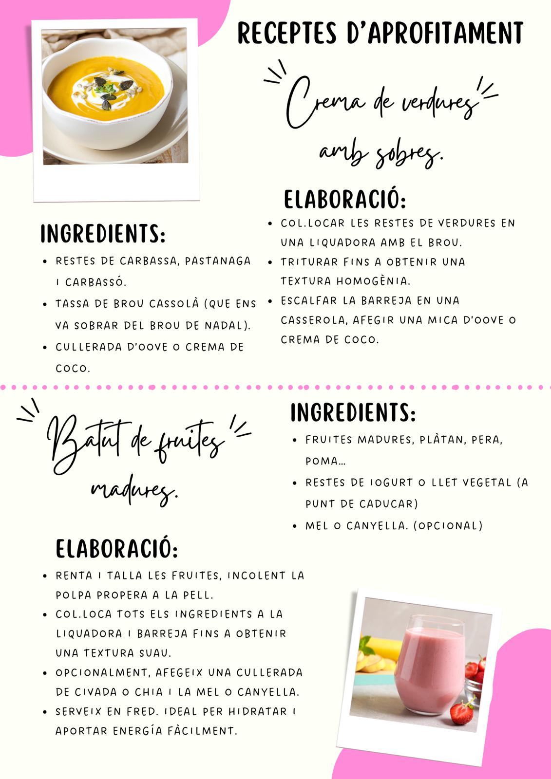 Hem preparat una mena de receptes pensades per aprofitar al màxim els aliments, evitant el desproveiment i fomentant una alimentació conscient.